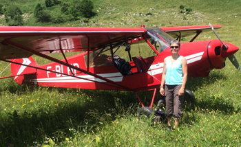 devant son Piper PA-18 F-BLHP (anciennement propriété du club