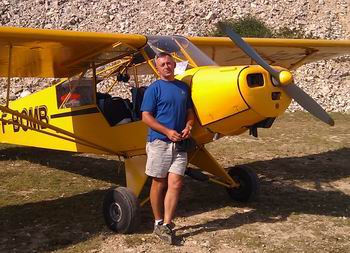 devant son Piper PA-18 F-BLHP (anciennement propriété du club